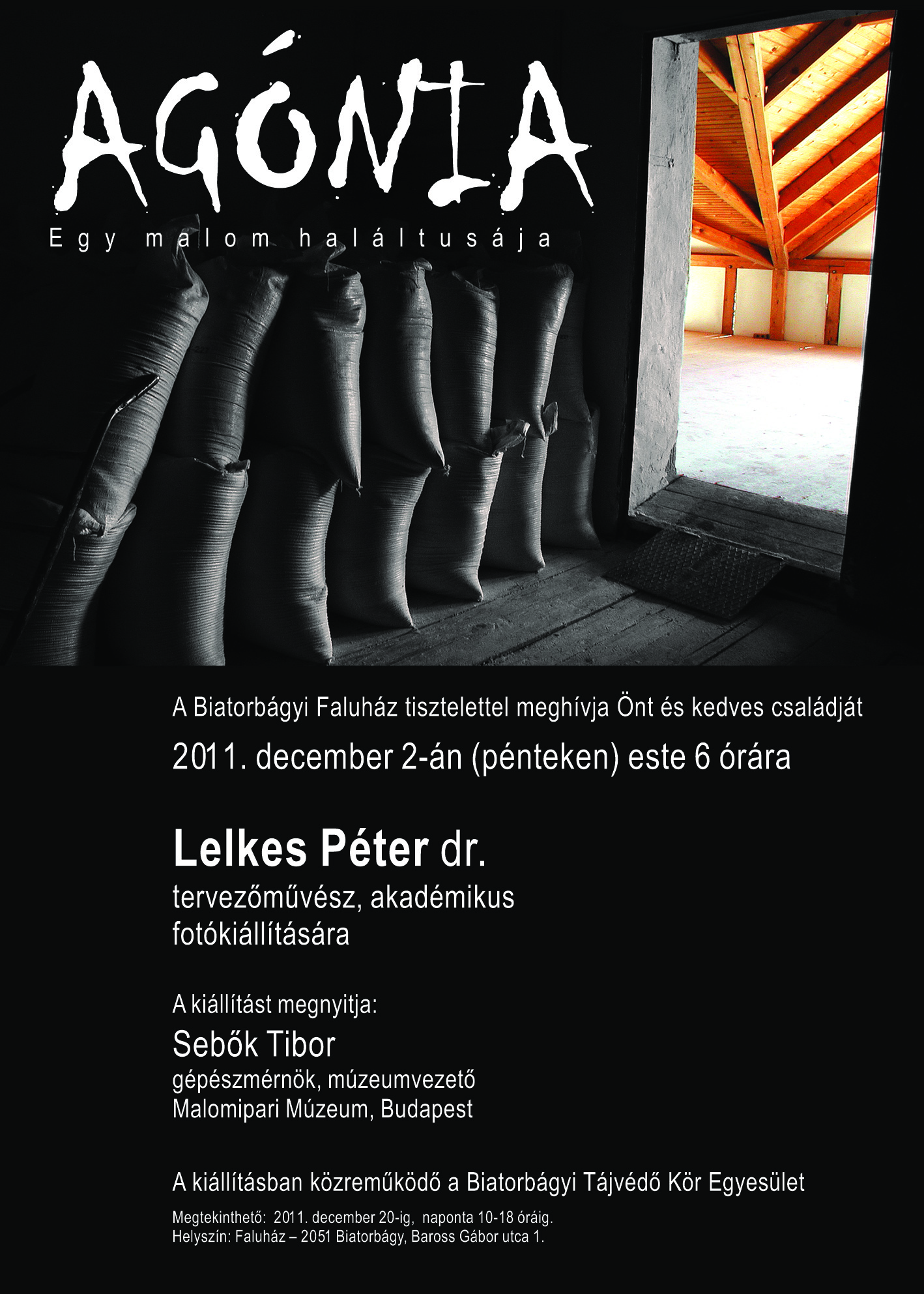 2011-ben, „Agónia” címmel, Lelkes Péter, a Biatorbágyi Ilona Malom pusztulásának megállítására rendezett fotókiállítása a Faluházban, amelyet Sebők Tibor a Budapesti Malomipari Múzeum vezetője nyitott meg.